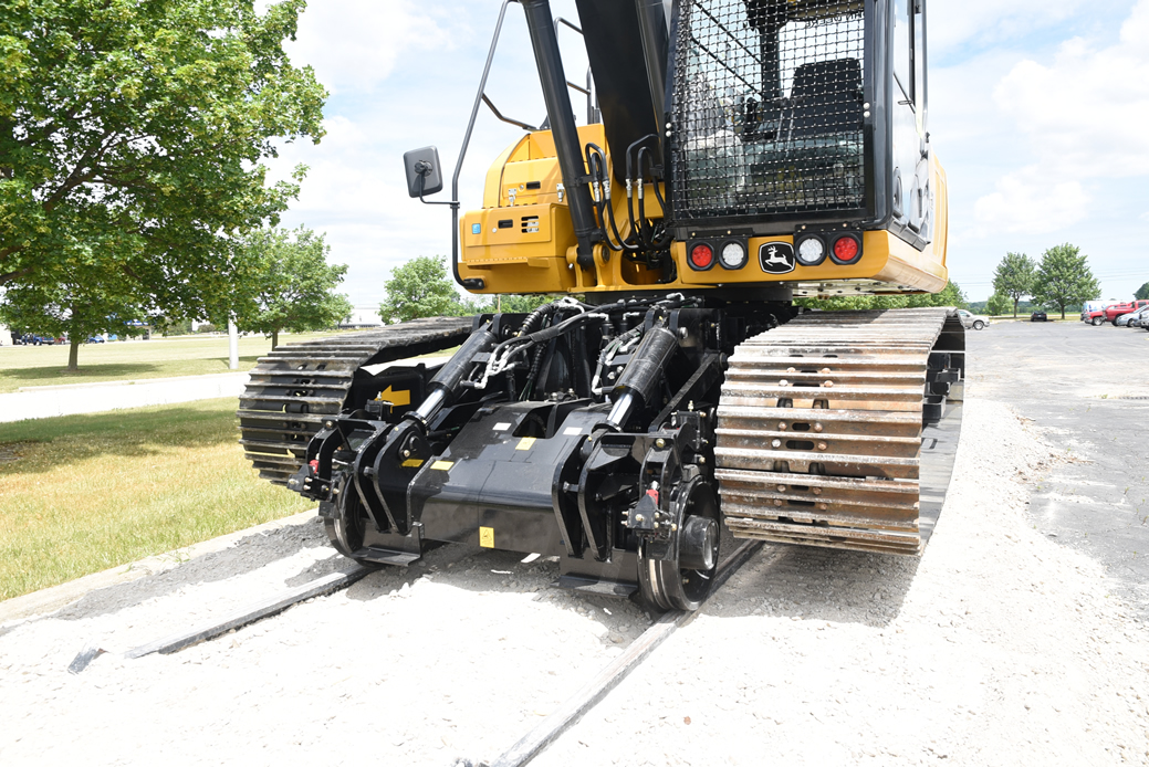 Hi-rail machines navigate tracks quickly, reducing transit times and manual labor on maintenance tasks. -